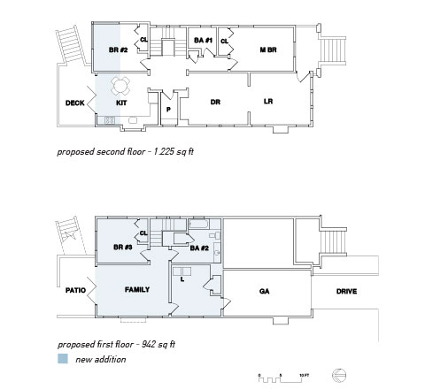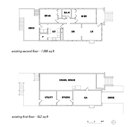 Remodel: 460 sf addition - new internal stair, family room, second bath, and bedroom
