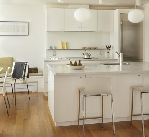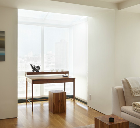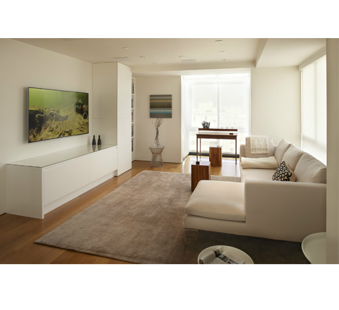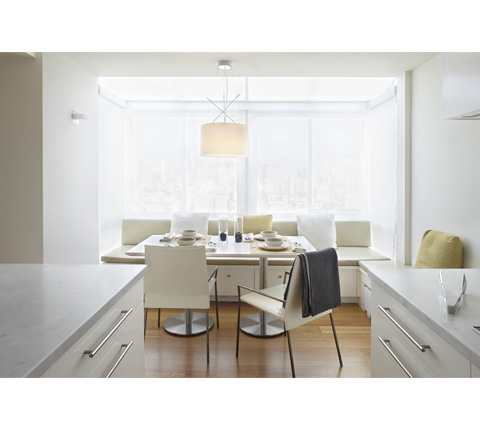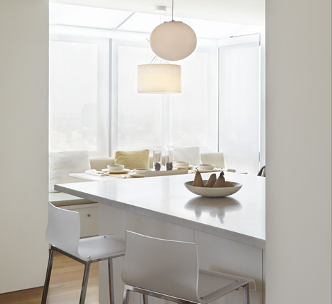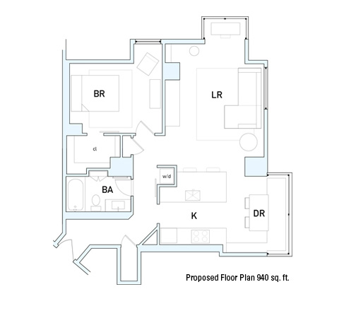 This remodel transforms a sixteenth floor, one-bedroom apartment into a sophisticated suite. Quietly elegant, the design focuses on introducing open space and airiness throughout.