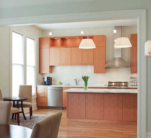 This project involves the interior remodel of one residential flat in a multi-family building. The design focus entails opening up and connecting the kitchen and dining spaces, while preserving a sense of individuality for each room.
