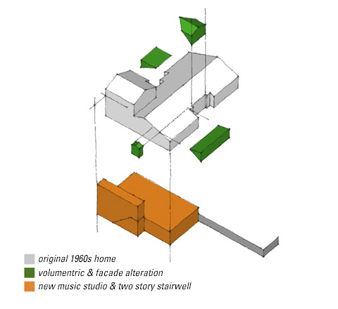 Addition: 1370 sf - music studio, workshop, garden terrace, patio kitchen
